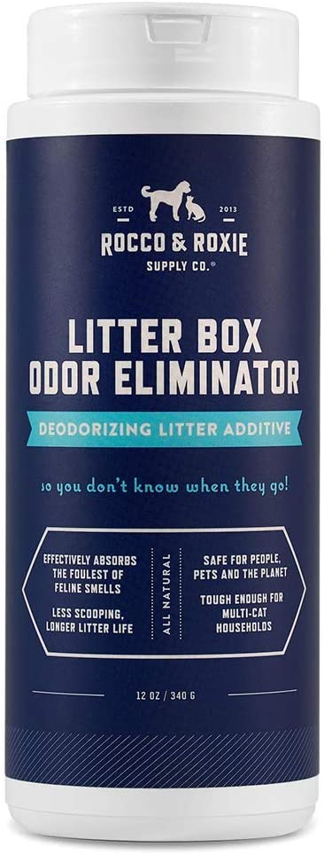 Rocco & Roxie Cat Litter Box Odor Eliminator – Best Natural Litter Deodorizer for Strong Urine Odor – Cat Supplies – Change Cat Box Less Often – Safe for Kitty Boxes – Fresh Scent – 12 oz Bottle